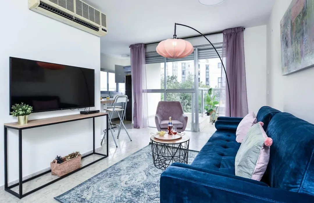 The accommodation offers a balcony and a fully equipped kitchen, as well as comforts like an air conditioner. At Charming 1Br Apt With Balcony With Mamad, guests will enjoy the convenience of hair dryers and towels in the bathroom. Furthermore, a shower, a toilet, and a washing machine is available.